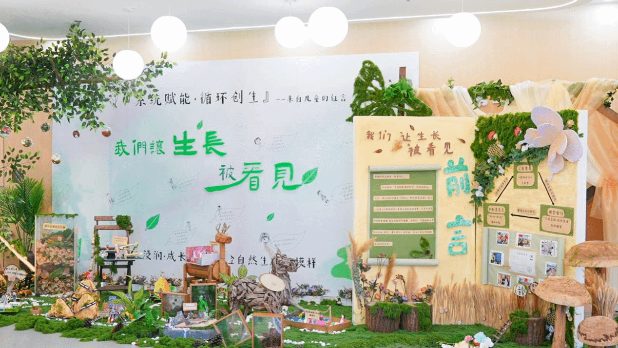 活动围绕“我们让生长被看见”主题,创设了“1+7+N”全景式成果展区,呈现了红谷滩区7所基地园在“浸润·成长”导航系统支持下课程生成的完整历程。展区通过图文、实物与视频相结合的方式,生动体现高校研究与一线实践的深度对话,吸引参会者驻足交流、沉浸体验,感受“教育如森林般生生不息”的系统力量与专业意境。