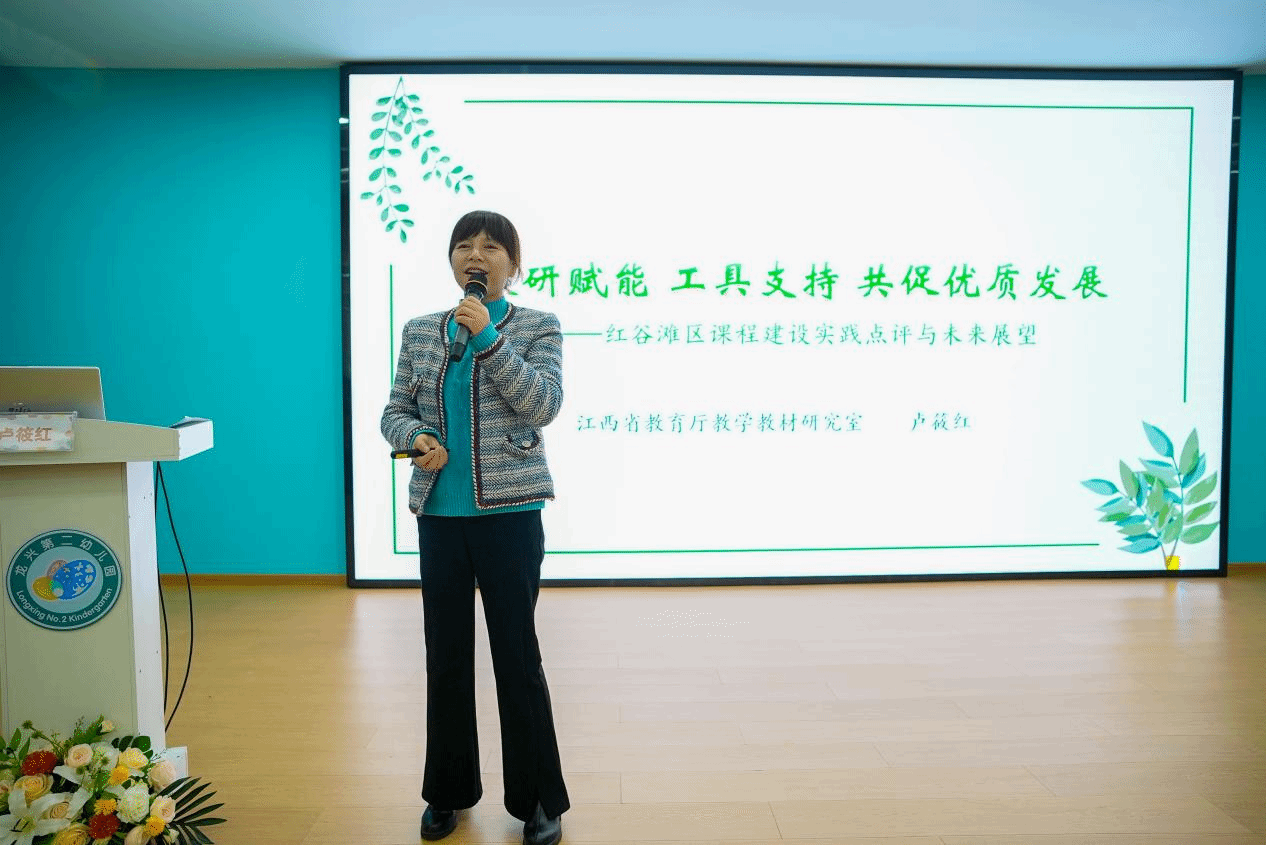 江西省教育厅教学教材研究室教研员卢筱红以“教研赋能 工具支持 促进保教质量提升”为题进行点评,高度认可红谷滩区课程建设的系统化成果。她指出,该导航系统真正将“以游戏为基本活动”“儿童为本”从理念转化为清晰行动,班本课程鲜活扎实、成效显著。她阐释了“链式主题教研模式”应遵循“真问题、真情境、真碰撞、真梳理、真反思、真跟进”的“六真”原则,通过“问题—解决—验证”循环链条推动教研走深走实。她期望红谷滩进一步优化系统应用、深化教研成果转化,让区域经验辐射更广,为全省提供借鉴。