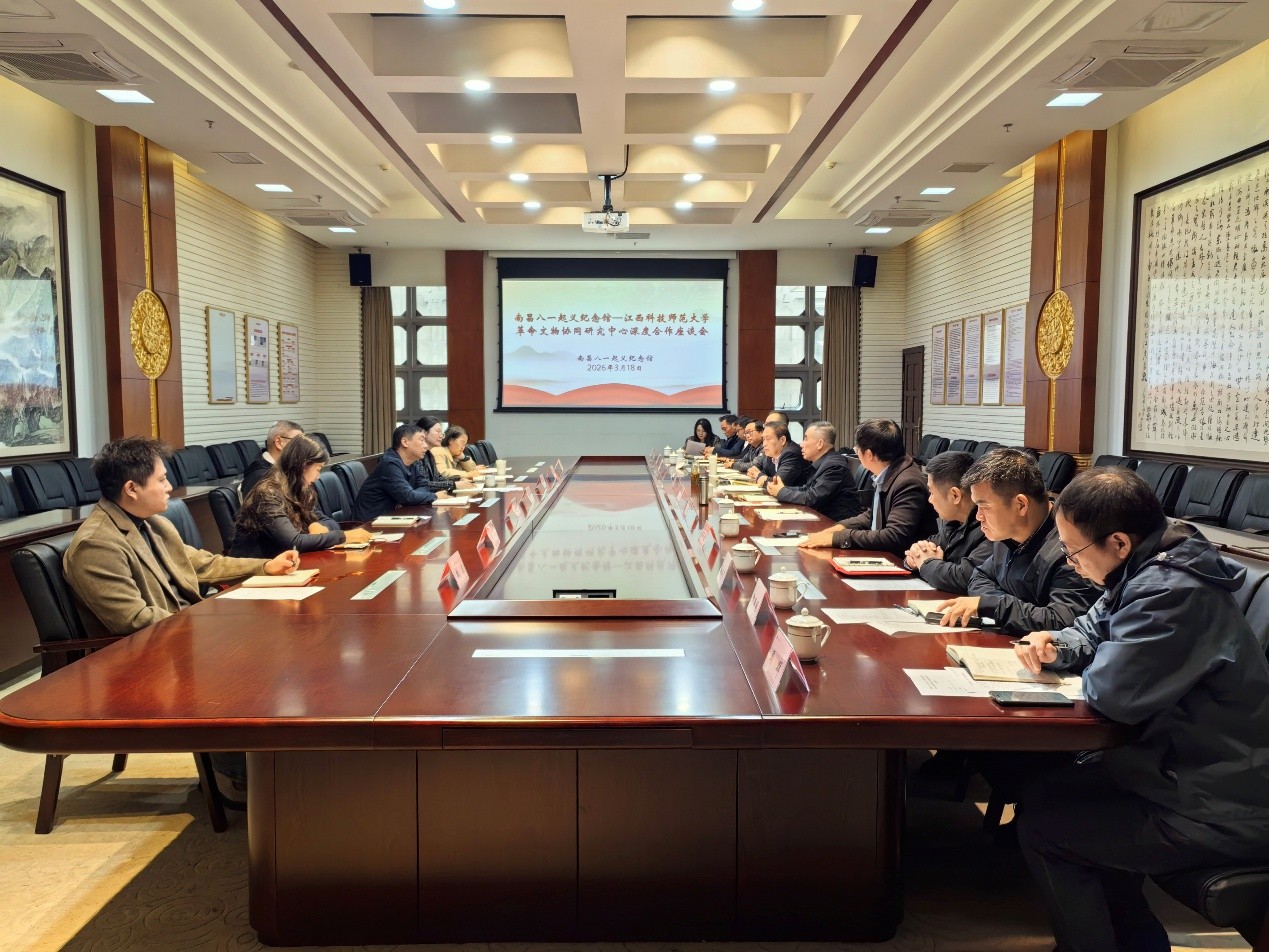 为推进省级革命文物协同研究中心建设,3月18日上午,校党委副书记刘国云一行赴南昌八一起义纪念馆参加革命文物协同研究中心馆校深度合作座谈会。南昌八一起义纪念馆副馆长张江(主持工作)、副馆长熊艳燕及相关科室负责人出席会议。