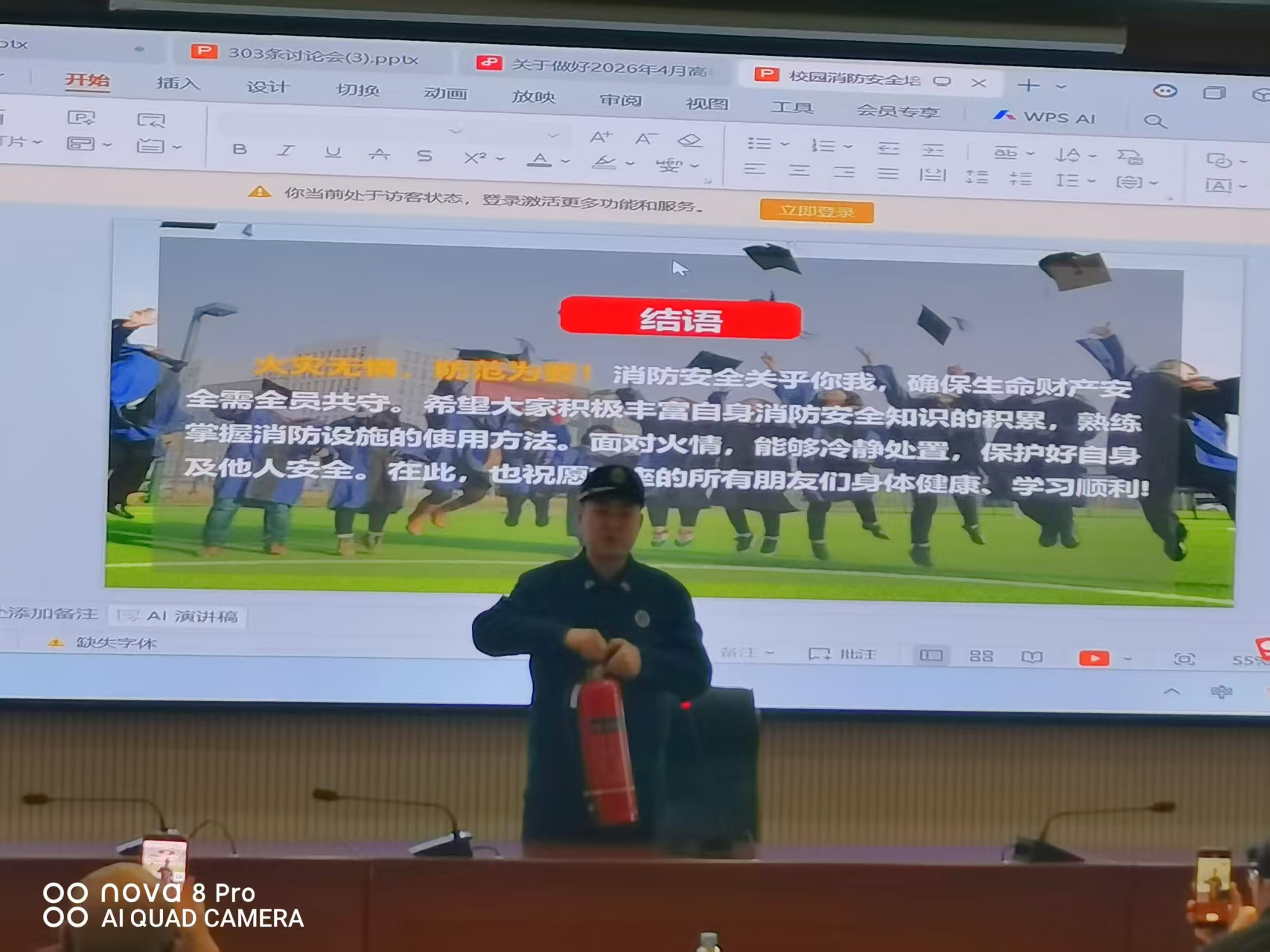 会议开展了近十年实验室安全事故警示教育,传达了省教育厅关于高校实验室安全工作的文件精神与最新要求,启动了学校2026年春季实验室安全文化月活动,并对活动安排作了具体说明。会议还结合我校实际情况,对《高等学校实验室安全检查项目表(2025年)》中常见隐患条目进行了重点解读。红谷滩消防大队宣传员立足高校实验室特点,通过典型案例剖析,深入浅出地讲解了火灾预防措施与应急技能。