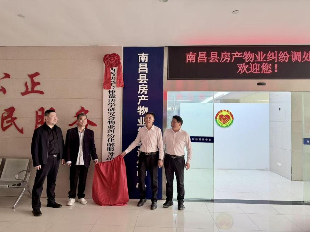 4月10日,成果转化迈出关键一步。南昌县政府副县长薛凯喜与我校国际仲裁研究中心主任罗时贵共同为“江西省法学会仲裁法学研究会物业纠纷化解服务站(一部)”揭牌,标志着该项调研成果进入实质性转化与实施阶段。中国江西网、江西商报等媒体对此次活动进行了报道。