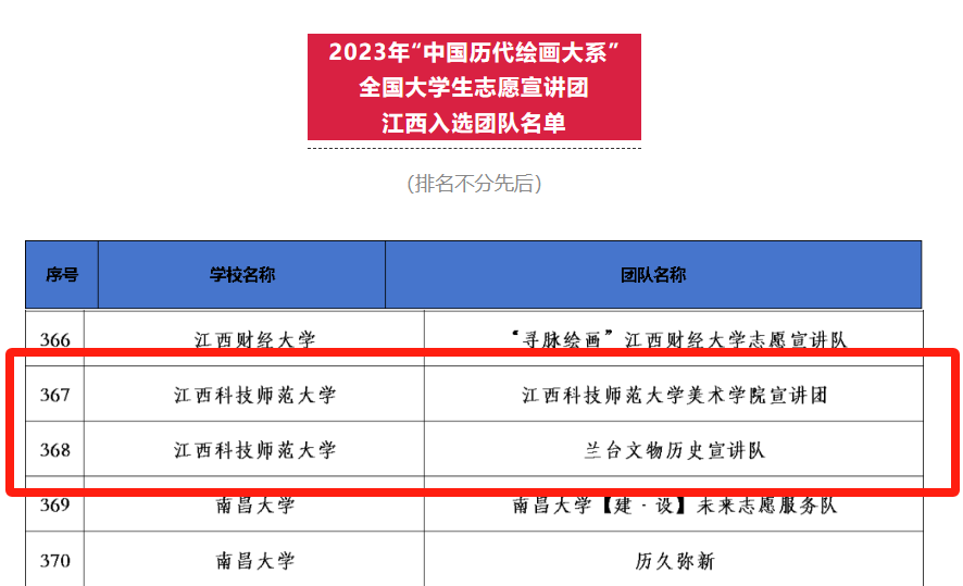 经过积极组织申报,学校美术学院宣讲团、兰台文物历史宣讲队2支队伍成功入选。全省仅14支队伍入选。