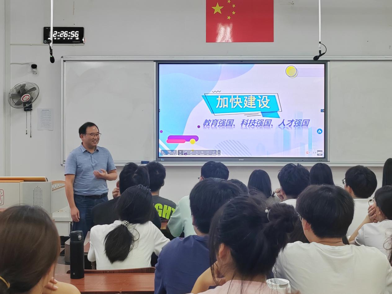 为把领导干部的理论优势转化为促进学校思政课改革创新的强大动力,努力培养德智体美劳全面发展的社会主义建设者和接班人,10月31日下午,校党委委员、副校长朱笃走进生命科学学院,为23级生物制药班师生讲授“加快建设教育强国、科技强国、人才强国”专题思政课。