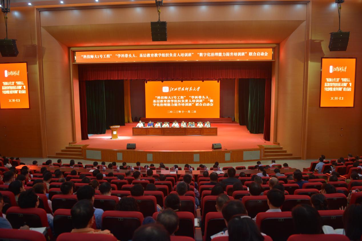 11月2日,学校在红角洲校区立德报告厅召开“科技师大1号工程”“学科带头人、基层教育教学组织负责人培训班”“数字化治理能力提升培训班”联合启动会。校党委书记裴鸿卫,校长左和平,校党委副书记刘国云,校党委委员、副校长朱笃、李玉保、李文龙、刘建飞,校党委委员、纪委书记、监察专员黄赣华出席。校党委委员、副校长郑鹏武主持。