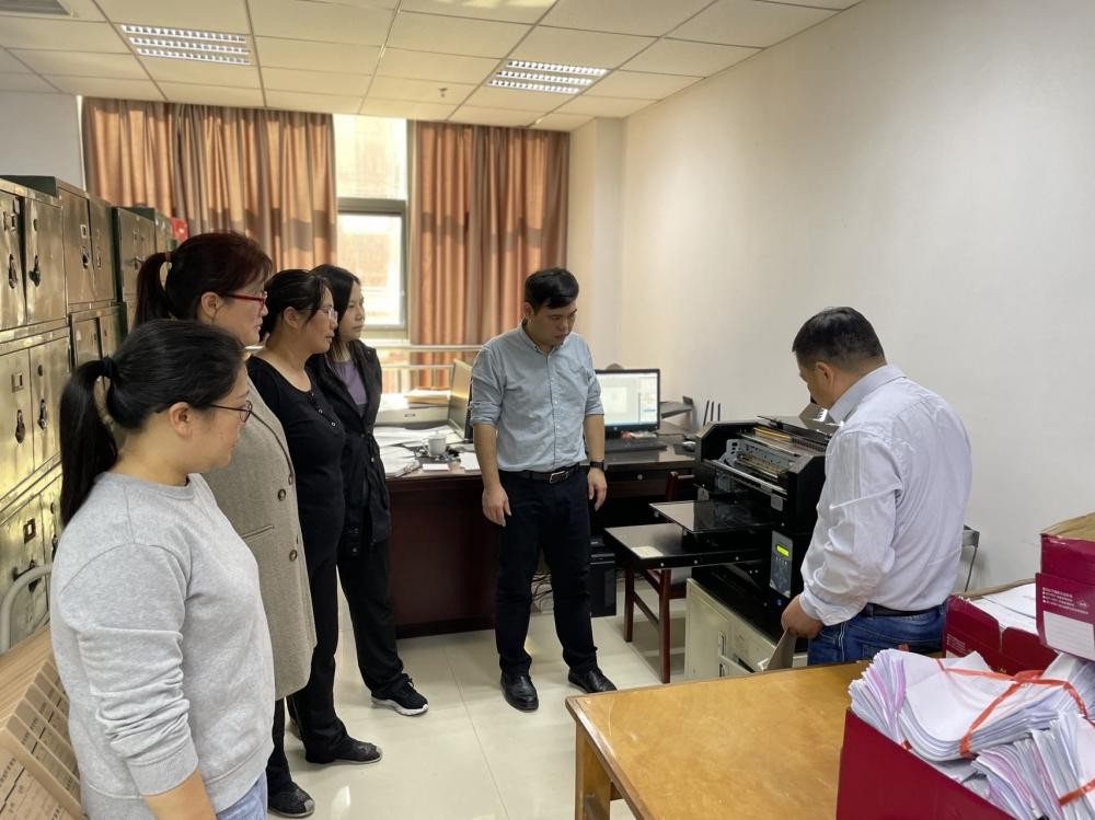培训采取知识讲解和实地操作的形式,讲解了档案盒脊打印机的原理、使用步骤、规范和使用过程中应注意的事项,并现场演示盒脊打印机的操作流程。全体党员依步骤逐一进行操作,操作完毕后开展了复盘总结,结合操作过程中出现的问题进行分析,并提出改进措施。
