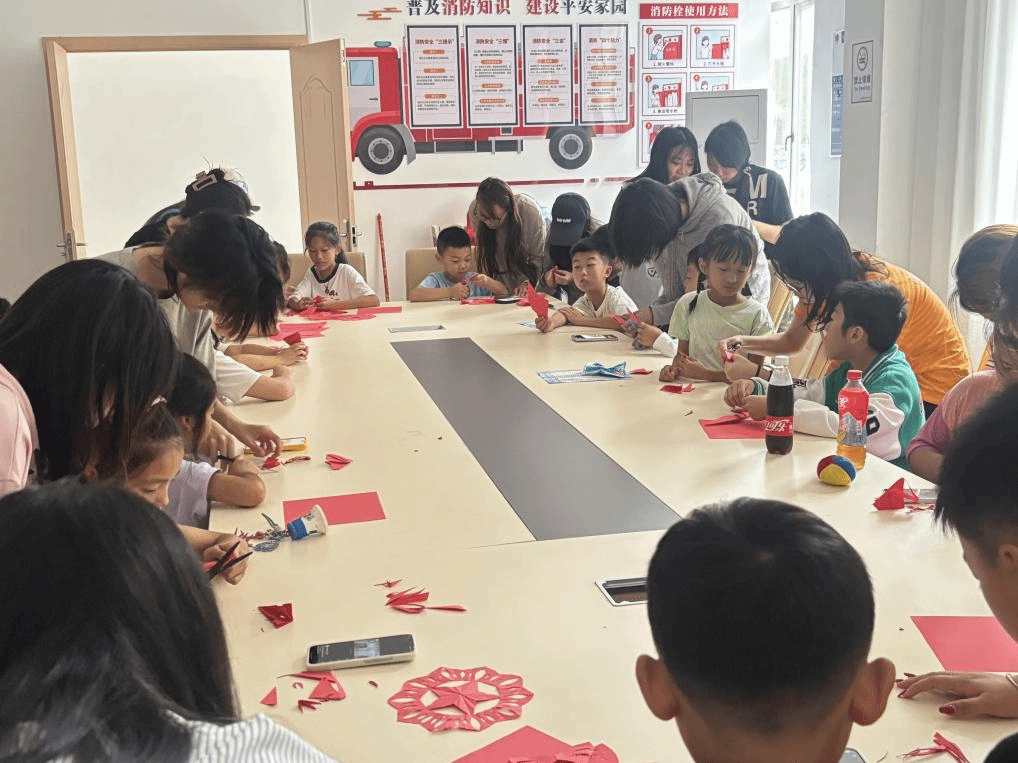 在志愿者的指导下,孩子们动手创作红色主题剪纸。一张张红纸在巧手裁剪中逐渐呈现出红五星等象征性图案,让红色记忆以艺术形式走进童心。