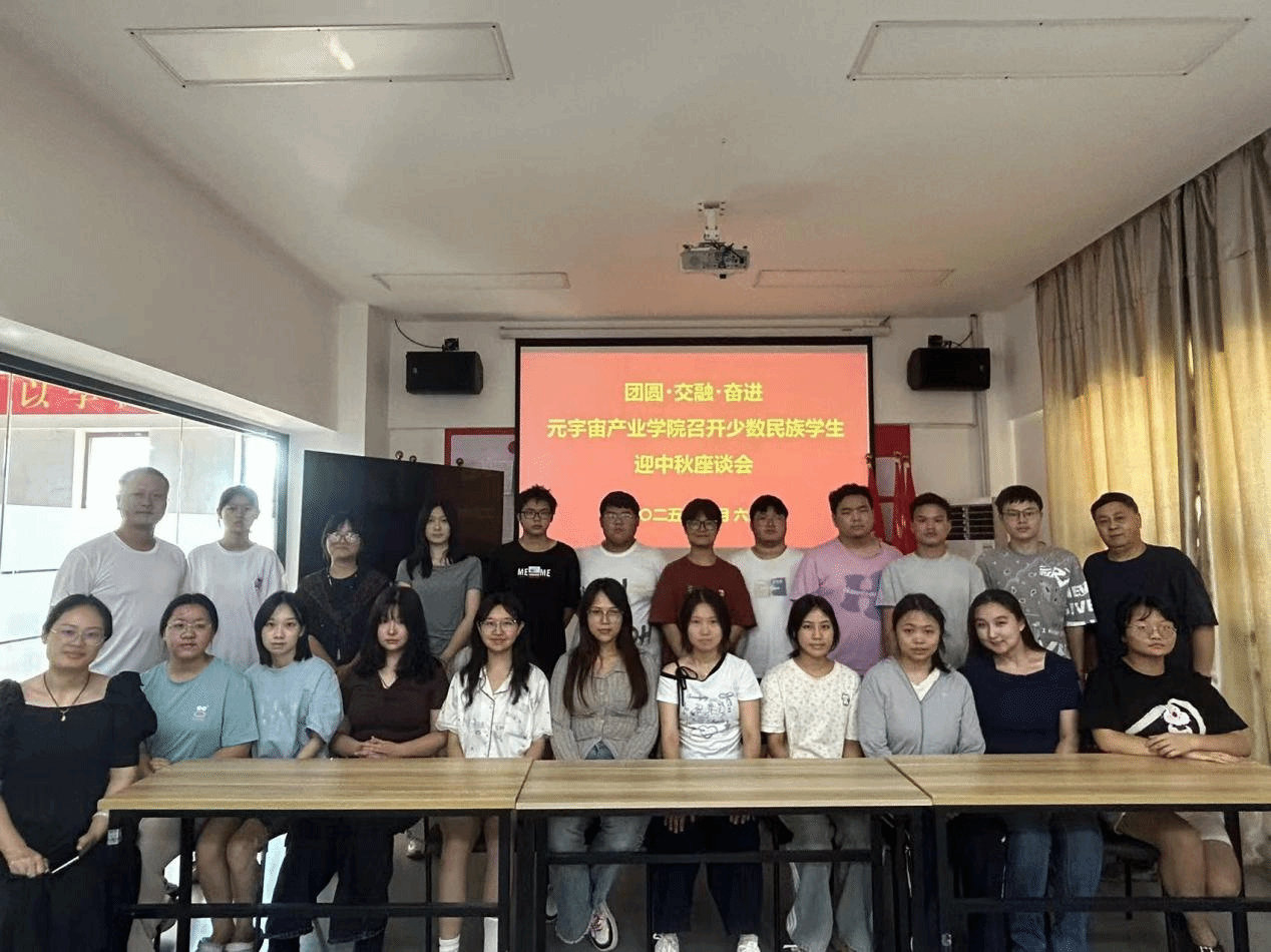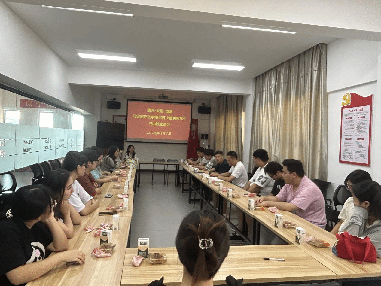 10月6日,元宇宙产业学院以“团圆・交融・奋进”为主题,组织召开少数民族学生中秋座谈会。学院党委书记涂晓群、党委副书记刘伟、相关辅导员及各族学生代表齐聚一堂,共叙情谊、共话成长、共绘愿景。