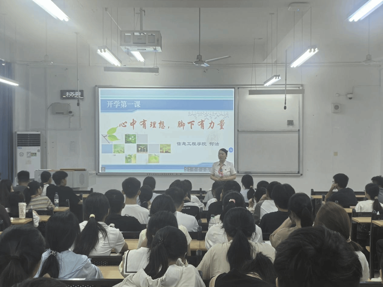 近日,信息工程学院在红角洲校区逸夫楼Y110开展“心中有理想,脚下有力量”主题新生入学教育课。课程由电子信息工程系专任教师何洁主讲,25级电子信息工程1班与2班全体新生到场聆听。