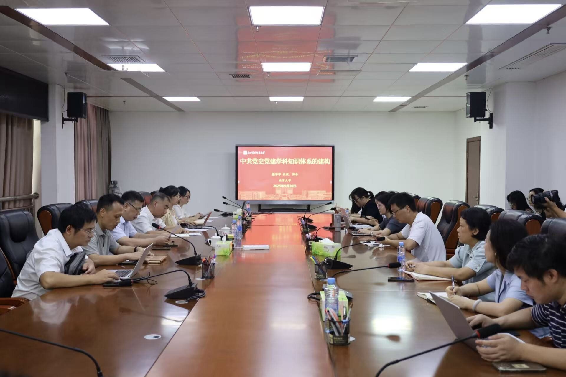 9月30日上午,马克思主义学院特邀南京大学马克思主义学院暨中共党史党建研究院博士生导师聂平平教授在红角洲校区图书馆第二会议室开展“中共党史党建学科知识体系的建构”专题讲座暨国家社科基金选题指导会。校党委副书记刘国云出席,马克思主义学院和中国共产党建军精神研究院党政班子成员、中共党史党建学学科团队成员、教师代表、硕士研究生代表参加。