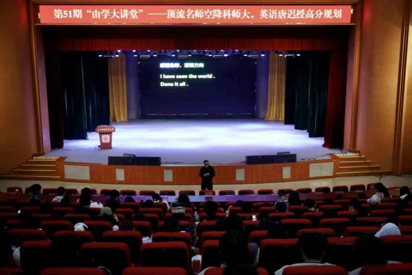 10月21日下午,学校在红角洲校区大学生活动中心红五星报告厅举行第三期青年夜校(第51期由学大讲堂)。此次活动特邀考研英语名师唐迟主讲,学校14个学院400余名学生参加。