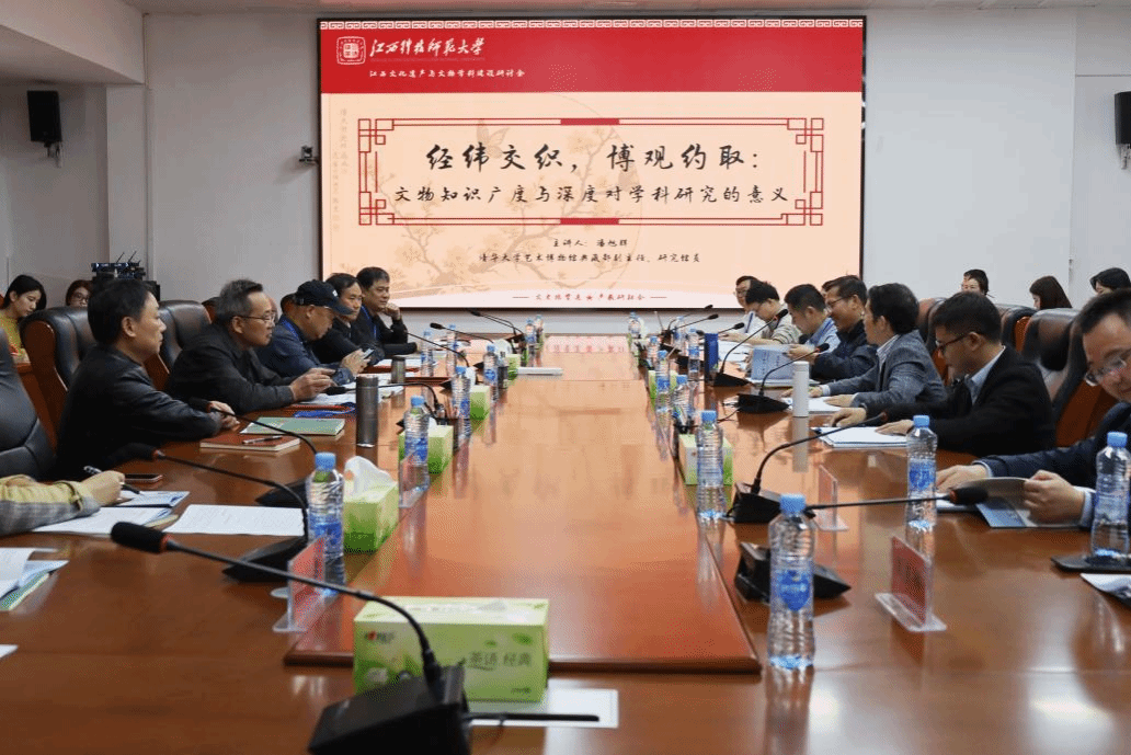 11月8日,学校在红角洲校区图书馆第三会议室举办“区域・文物・历史——江西文化遗产与文物学科建设研讨会”。清华大学艺术博物馆典藏部副主任、副研究馆员、学院文物专业行业硕士研究生导师潘旭辉应邀作主题讲座。