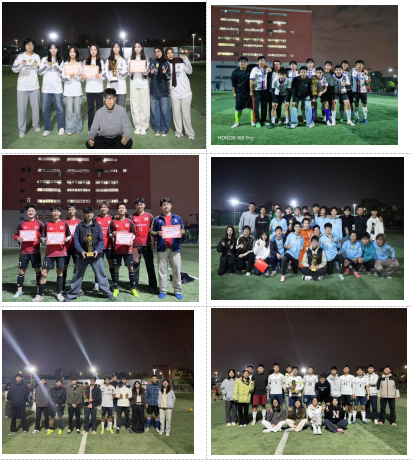 绿茵场上,球员们斗志昂扬、拼抢积极,默契的传切配合、精准的射门和精彩的扑救频频上演。每一次进攻都扣人心弦,每一次防守都展现出坚韧意志。场边观众的加油声、欢呼声此起彼伏。经过激烈角逐,国际教育学院、智能制造学院、经济与管理法学院分获公体男子组冠亚季军;2022级体育教育1班、2022级体育教育4班、2022级体育教育3班分获体育与健康学院男子组冠亚季军;公体联合队、体育与健康学院2023级女子队、体育与健康学院2025级女子队分获女子组冠亚季军。