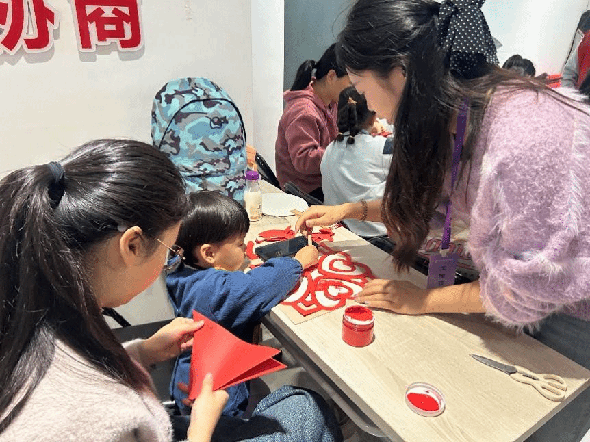 志愿者们以生动的讲解带领孩子们重温长征历史,并结合美术专业特色,讲解了剪纸、丙烯拓印、植物拓染等多种传统艺术技法,引导孩子们自由创作。孩子们在志愿者的指导下,用彩纸、颜料与自然素材,创作出一幅幅充满童趣与创意的红色主题作品,用色彩表达对长征精神的理解与敬意。