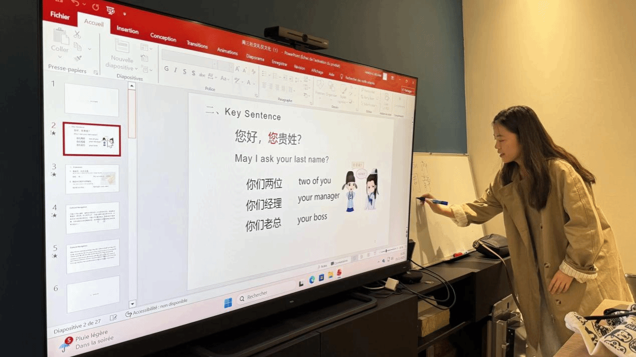 丹吉尔孔院教师周静通过生动的讲解与互动,深入浅出地介绍了中摩商务沟通方式、工作习惯等方面的异同,帮助参与者更好地理解跨文化沟通的重要性,并提供了有效的交流策略。期间中摩双方员工积极互动,分享自身在工作中的文化体验与感受,现场讨论热烈,充分展现了开放、包容的交流精神。