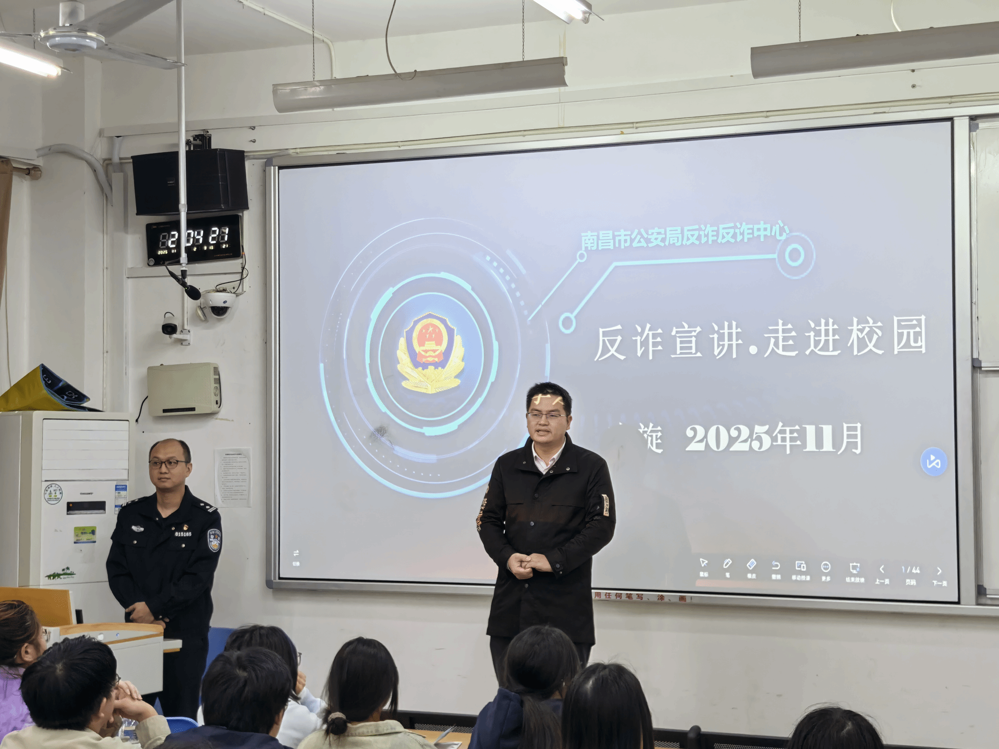11月4日下午,“红五星”一站式学生社区携手马克思主义学院、人工智能学院、经济管理与法学院,特邀南昌市公安局反诈中心、中国民生银行南昌分行,在红角洲校区文科楼W1102教室举办“反诈进校园”专题宣讲活动。马克思主义学院党委副书记阙伟康出席活动。