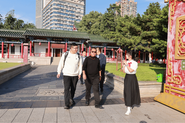 11月16日下午,印度尼西亚东努沙登加拉省长厄马努埃尔·勒纳率领的访华团一行到南昌滕王阁参观。旅游与历史文化学院2023级旅游管理(国际导游)专业周佳琪、胡诗琦两位同学承担讲解任务,以出色的双语能力和文化素养赢得了来宾的一致赞誉。