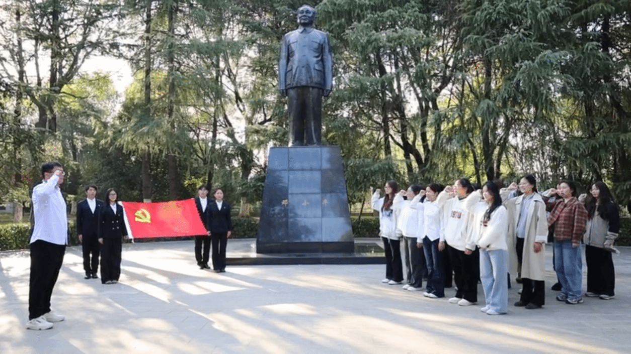 在邓小平同志铜像前,气氛庄严肃穆。全体师生党员面对鲜红党旗重温入党誓词。“我志愿加入中国共产党……”铿锵有力的誓言,是对老一辈革命家最深切的缅怀,更是对党的初心使命最坚定的坚守。在场的党员纷纷表示,通过沉浸式体验,增进了对党的创新理论的政治认同、思想认同、理论认同、情感认同,坚定了矢志不渝跟党走、为党和人民事业奋斗终身的决心。在场的入党积极分子也深受触动,坚定了他们向党组织靠拢、为人民事业奋斗的理想信念。