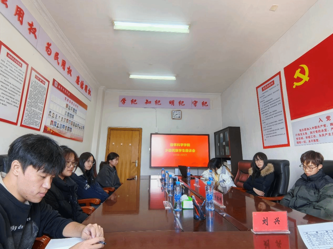 11月25日,数学科学学院在红角洲校区组织召开少数民族学生座谈会。学院党委副书记刘兴主持会议,辅导员肖城及学院全体少数民族学生参加。