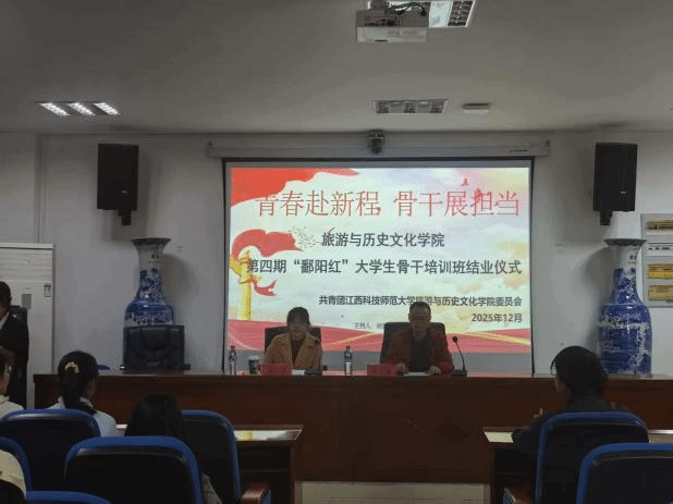 12月1日晚,旅游与历史文化学院在红角洲校区文科楼W2317会议室举办第四期青年大学生骨干培训班结业仪式,学院党委副书记蔡文强、学院团委副书记孙子淇及培训班全体学员参加。