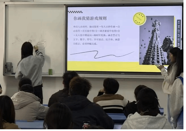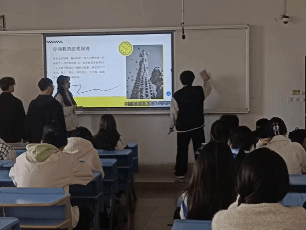 为增进学员间的交流与协作,文艺部部长王梦茹与副部长肖敏策划并组织了破冰游戏环节。热身结束后,学员们随机分组,参与“名字接龙”“你画我猜”等趣味活动。现场氛围热烈活跃,在欢声笑语中,学员间的距离迅速拉近。
