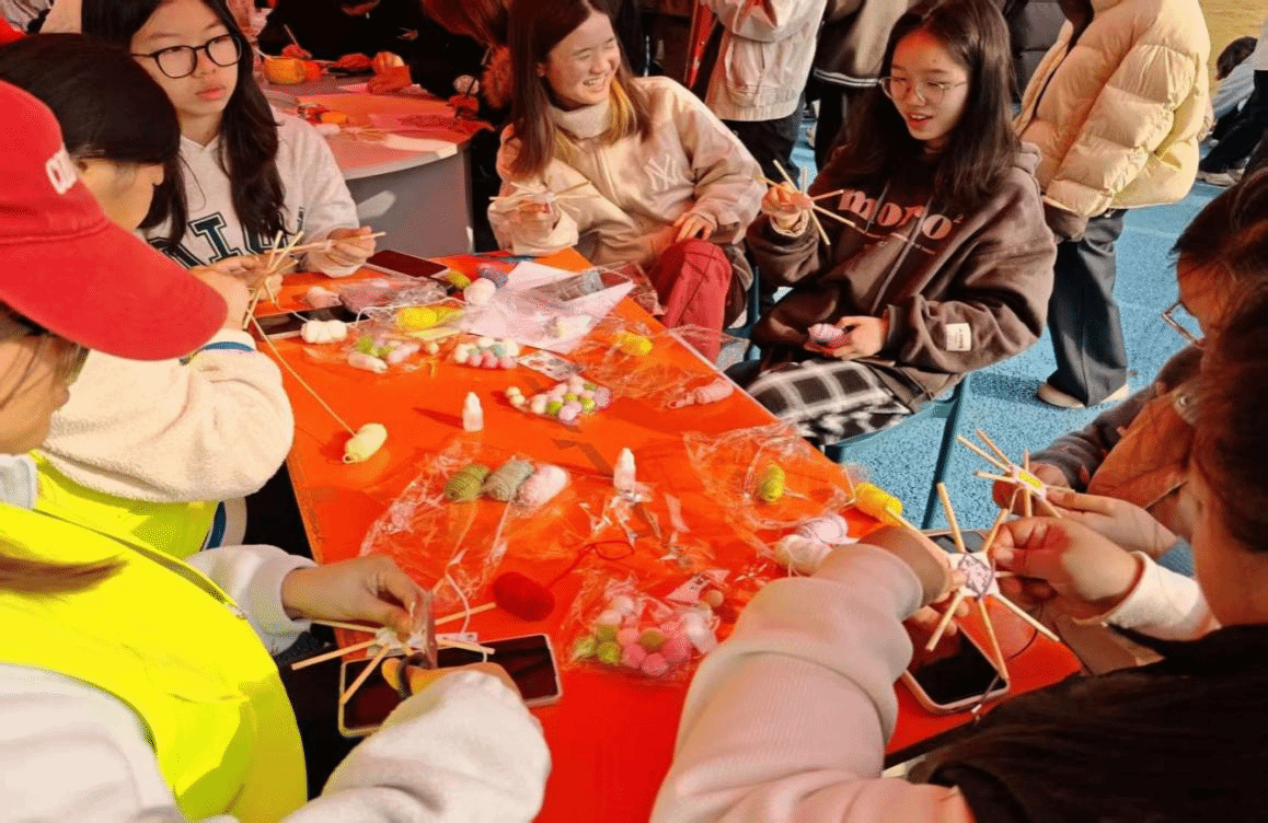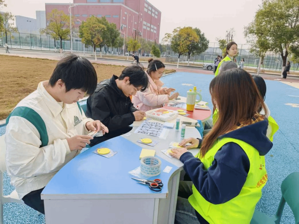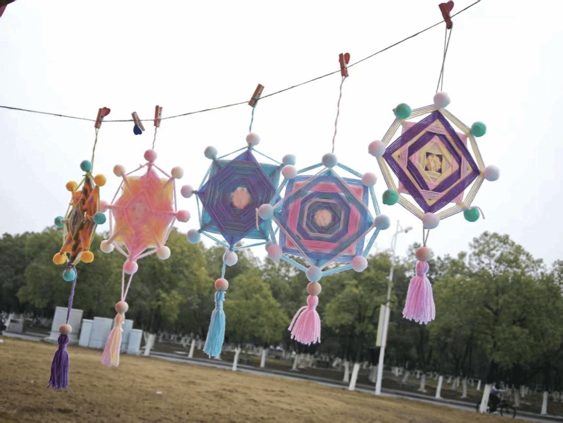 曼达拉编织体验区里,同学们专注于手中的彩绳与编织架,通过经纬交织创造独特的手工作品。在安静而投入的手作过程中,大家逐渐放松身心,完成的作品也成为一份充满意义的“情绪纪念品”。
