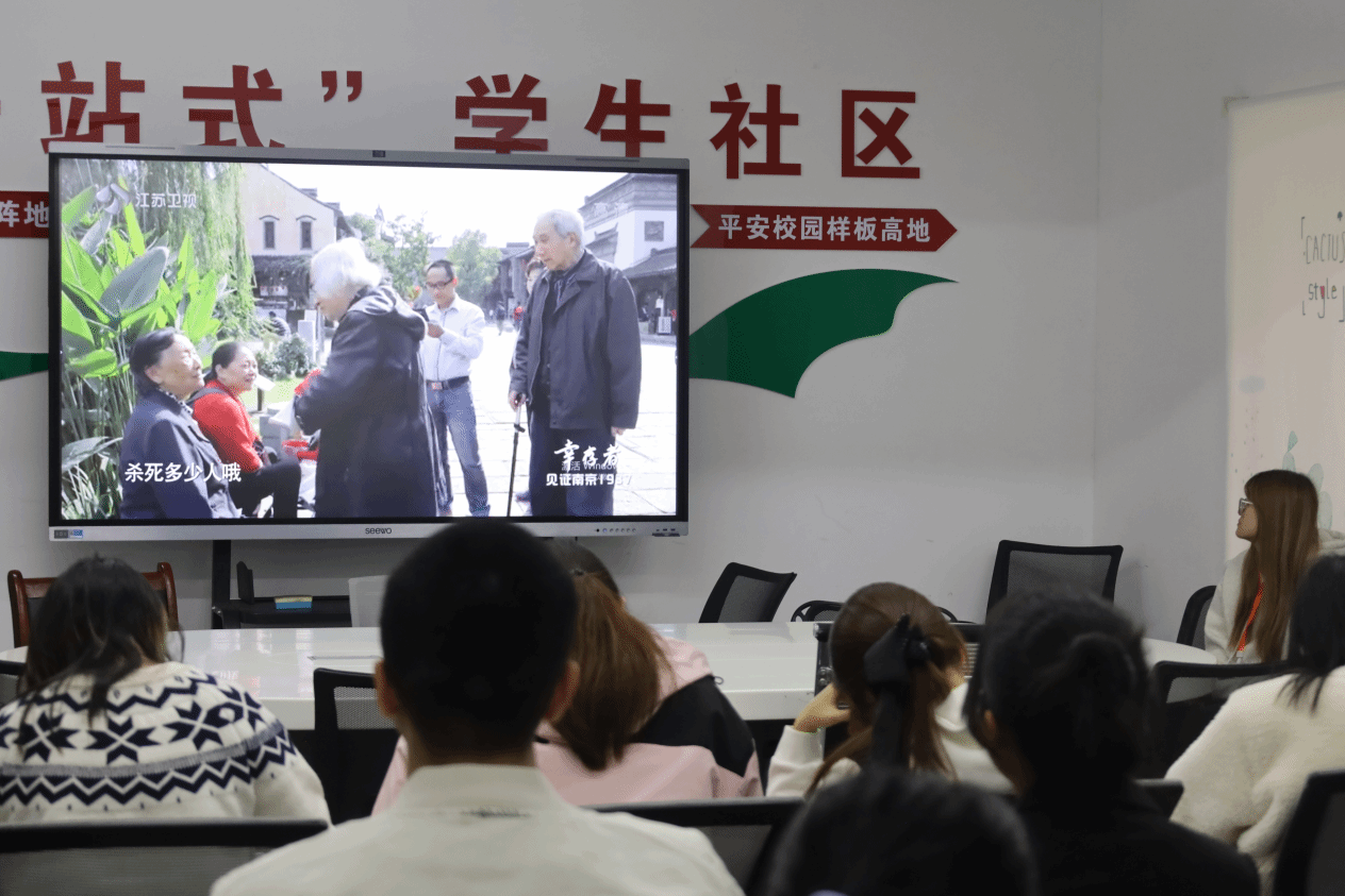 团员青年们共同观看了南京大屠杀国家公祭日纪录片《幸存者:见证南京1937》片段。幸存者的亲历讲述、珍贵的历史影像,将抽象的苦难具象化,让1937年那段山河破碎、同胞泣血的历史,清晰地呈现在团员们眼前。全场肃穆凝神,历史的沉重与悲怆穿透屏幕,镌刻为深入骨髓的集体记忆,更让青年深刻体悟到“落后就要挨打”的警示箴言。
