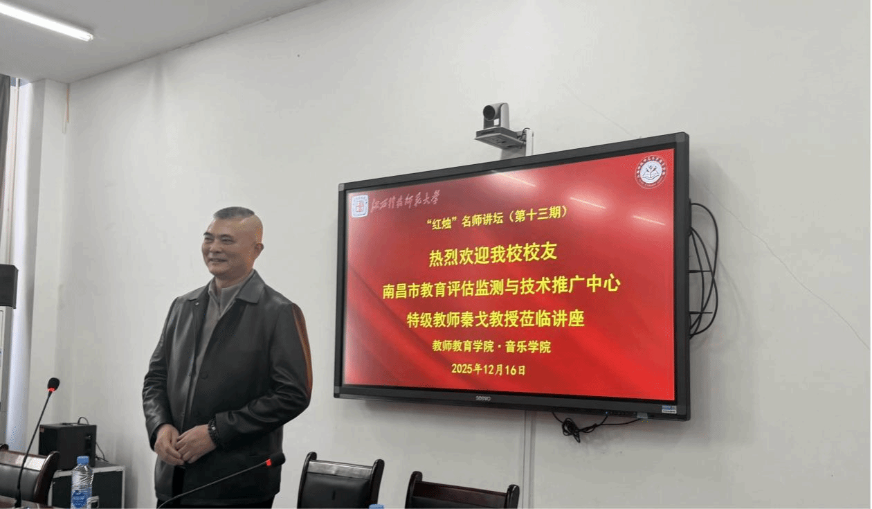 12月16日,由教师教育学院主办,音乐学院承办的“红烛”名师讲坛第十三讲在音乐楼9107会议室举行。活动特邀我校1991届音乐系优秀校友秦戈老师以“征途似海,情怀如歌”为主题,为师范生们带来了一场兼具理论深度与实践指导意义的思想盛宴。