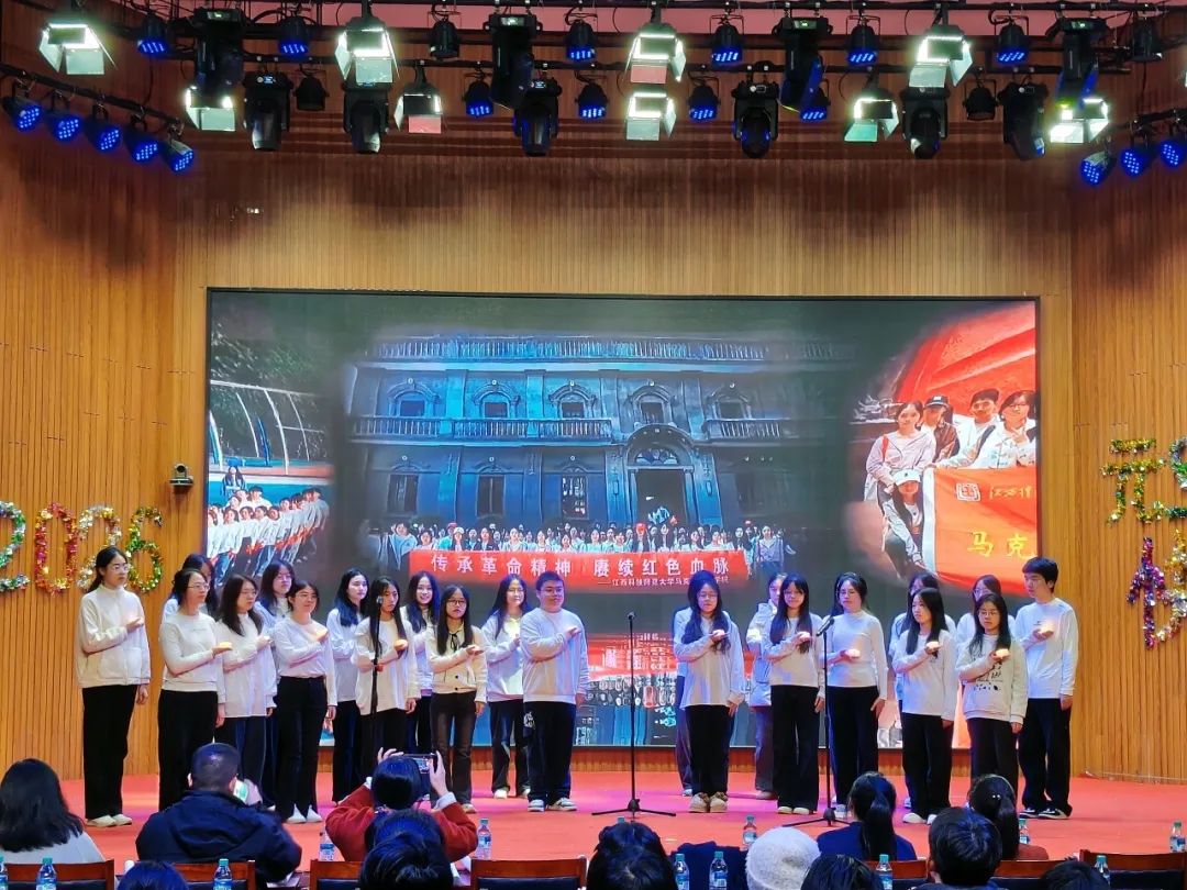 江西科技师范大学党委副书记、中共党史党建研究院院长刘国云教授莅临晚会观看表演,学院党委书记陈红梅登台致新年贺词,寄语全体师生“以信仰为帆,以奋斗为桨”,在新征程上续写荣光,让红色薪火代代相传。学院院长郜志刚则肯定了学院2025年的成就,预祝学院2026一切顺利。