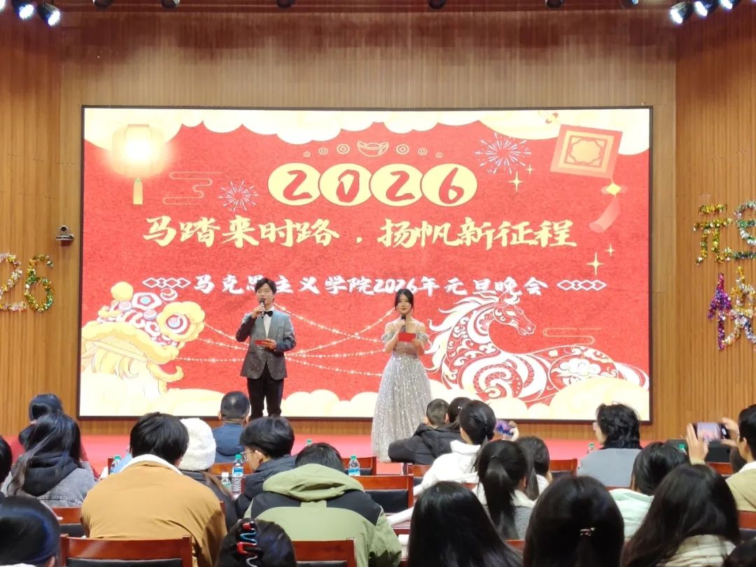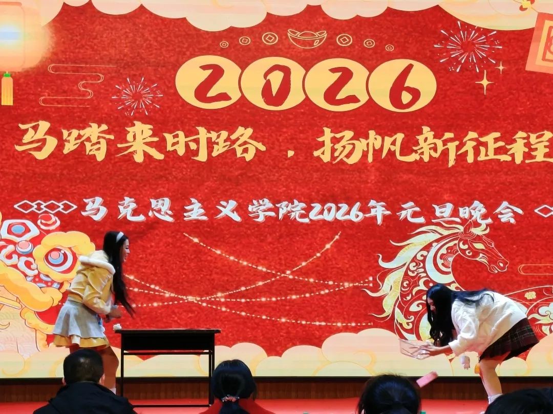 12月27日,马克思主义学院“马踏来时路·扬帆新征程”2026年元旦晚会璀璨启幕。晚会紧扣“红色传承·青春奋进”主题,以“马行初心·薪火承路”“马绽芳华·程启新章”“马奔未来·扬帆起航”三大篇章,铺展马院师生坚守初心、砥砺前行的精神长卷。