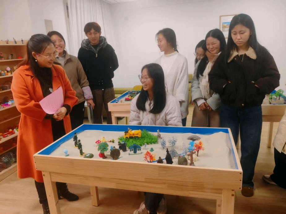 12月17日下午,由心理健康教育与咨询中心主任蒋常香教授带领的“研途同行·压力共解”心理沙盘团体辅导在沙盘游戏室温暖开展。15名参与者在90分钟的体验中,通过共同摆放沙具、塑造沙景,进行了一场无声而深入的内心对话。沙盘成为压力表达与情感投射的载体,在互动与观察中,同学们不仅疏解了考研带来的紧张情绪,也在彼此的故事里获得了理解与支持。