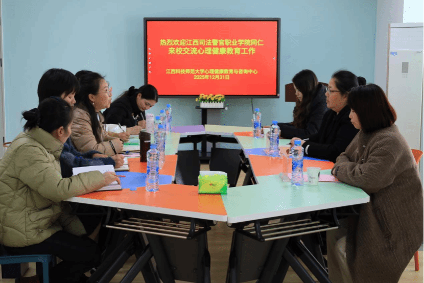12月31日,江西司法警官职业学院心理健康教育中心一行来校交流心理健康教育工作,心理健康教育与咨询中心全体教师参加座谈交流。