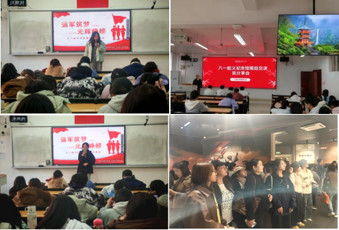 各学院以班级为单位,开展“强军筑梦 光荣峥嵘”“立报国志 做奋斗者”等主题班会。班会中,学子们分享研学感悟、展示学习成果,围绕“如何将‘建军精神’融入专业学习”“新时代青年如何担当强国使命”等现实话题结合研学所见所思,畅谈感想,规划学业。“通过研学深刻认识到今天的幸福生活来之不易,将以革命先辈为榜样,端正学习态度,练就过硬本领,在青春赛道上奋力奔跑。”信息工程学院学生韦勇标在主题班会中说道。