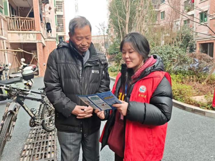 在江西省赣州市南康区芙蓉社区,美术学院严羚尹参与反诈宣传与消防排查,入户讲解典型案例,走进商铺核对消防设施,以细致作风筑牢安全防线。