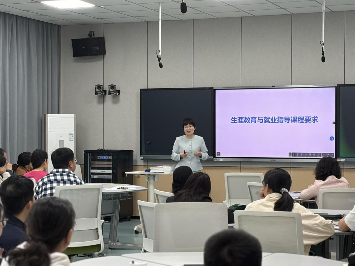 任青艳以“新时代大学生生涯教育的挑战与应对”为主题,围绕高校生涯发展与就业指导课程定位展开分享,解读了新时代生涯教育与就业指导课程的新要求,阐述了如何通过课程教学提升大学生就业的能力。她表示,高校生涯与就业指导课程是高校生涯教育的主阵地,旨在增强学生生涯发展意识,引导学生积极参与学习实践,培养学生适应职场快速变化的能力。