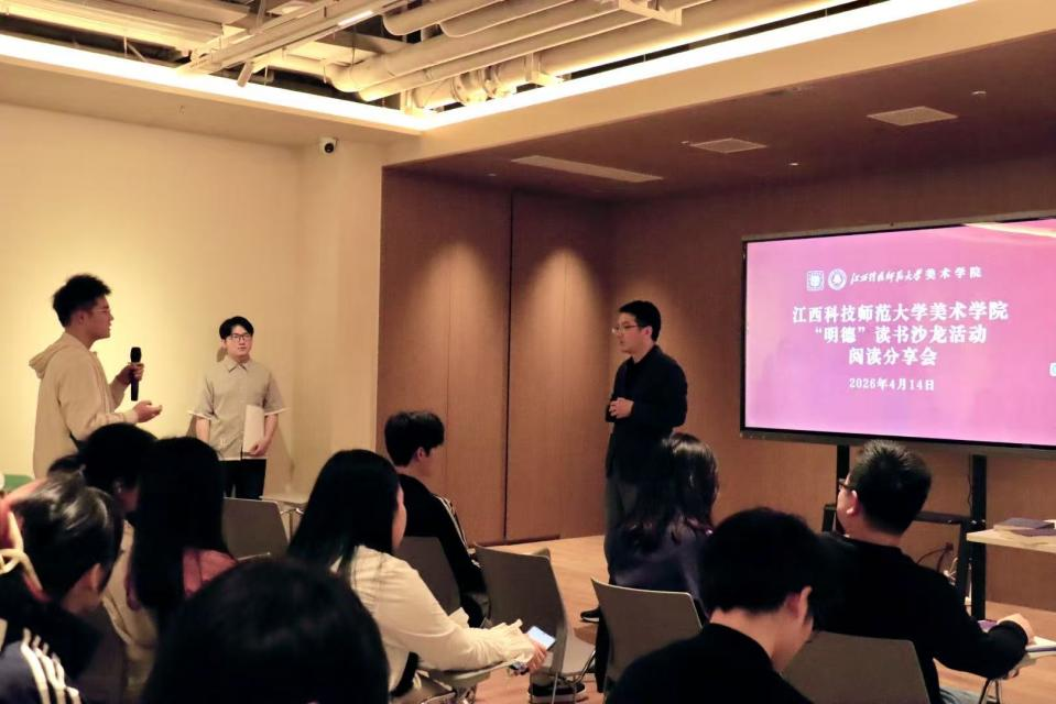 4月14日,美术学院大学生骨干读书班在红角洲校区正度书店开展读书分享活动,围绕费孝通经典著作《乡土中国》进行专题研读与交流。美术学院副院长廖江波与学院80余名骨干代表参加,在经典共读中感悟中国乡土文化内涵。