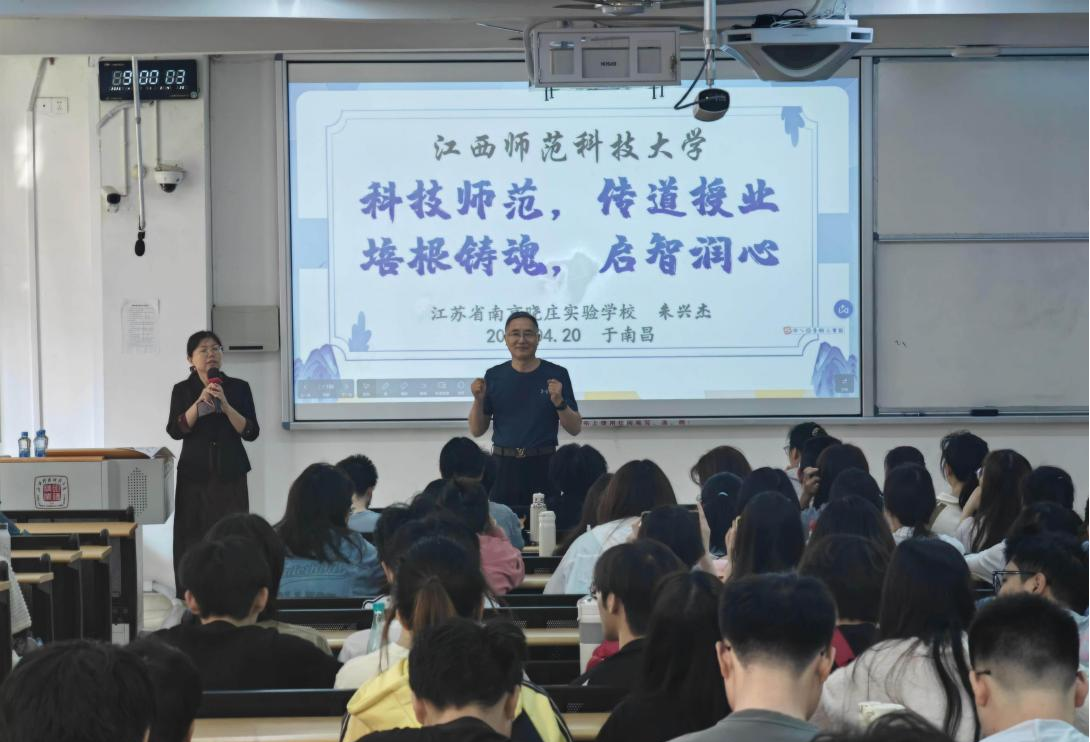 4月20日上午,由教师教育学院主办的第十六期“红烛”名师讲坛在红角洲校区W1109教室举行。本期讲坛以“科技师范,传道授业,培根铸魂,启智润心”主题,特邀江苏省正高级教师、特级教师、镇江市名校长朱兴杰担任主讲嘉宾,教育学部党委书记、教师教育学院院长江艳主持。