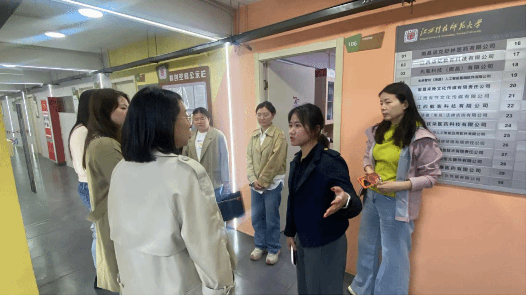 4 月 21 日下午,南昌市人力资源和社会保障局一行到我校大学大学生创新创业孵化基地开展调研,实地督查基地建设运营成效,精准对接青年创业发展服务需求。
