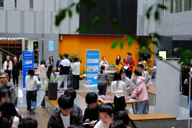 开幕式由图书馆馆长熊英、副馆长黄弋芸及本届读书节总策划吴丹共同以一场沉浸式直播形式开启。活动现场特邀中国知网、超星集团等顶尖机构培训师入驻,现场开展“AI工具阅读体验”工作坊。师生们零距离体验了AI辅助阅读、智能学习规划等前沿功能,让海量学术资源与智能服务触手可及。同时,对馆藏经典好书集中展示,现场即可借阅,参与“一句话荐书”活动,分享阅读火花,让思想在交流中碰撞。图书馆专属AI馆员“小灵宝”在本届文化节首次实体化惊艳亮相,重新定义了校园阅读的新体验。