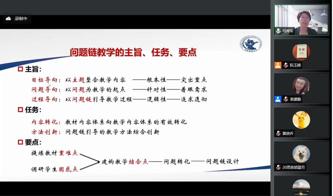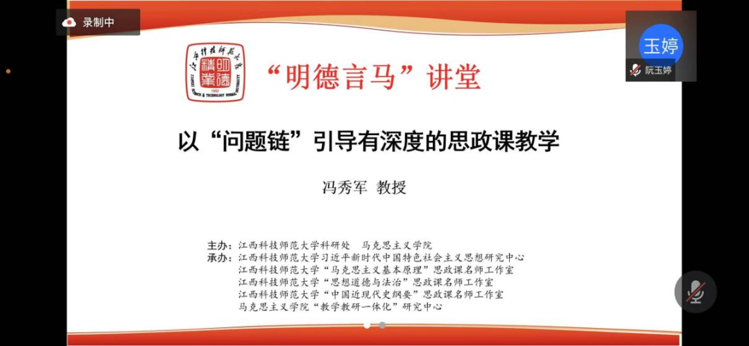 近日,中央马工程专家、教育部马克思主义理论类专业教指委委员、中央财经大学马克思主义学院院长冯秀军教授,受邀为江西科技师范大学全体思政课教师作《以“问题链”引导有深度的思政课教学》线上专题报告。冯秀军教授结合习近平总书记关于思政课的重要论述,紧密联系曾主持并获2018年国家级教学成果一等奖的《基于“问题链教学”创新的高校思想政治理论课综合改革》,提出以学生关切的现实问题为切入点,以环环相扣的问题链作为引导,让教学沿着答疑解惑的认知路径层层递进。