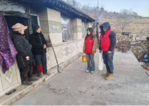 在河北省秦皇岛市青龙满族自治县龙王庙村,经济管理与法学院崔宇韩同学参与村情培训、物资分装,与志愿者一起将米面油等生活物资送至困难群众手中。当王奶奶握着他的手连连道谢时,他深深感受到:“一份物资,一份温情,这就是乡土最真挚的牵挂。”
