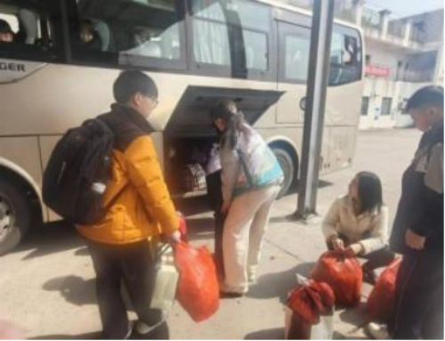 在永丰县汽车总站,旅游与历史文化学院徐宇轩同学加入了“暖冬行动”志愿服务队。他主动为返乡老人搬运行李,为旅客耐心指引方向,用实际行动诠释着“奉献、友爱、互助、进步”的志愿精神,让春运的归途充满温情与感动。这些看似平凡的举动,恰是“暖冬行动”最动人的注脚。